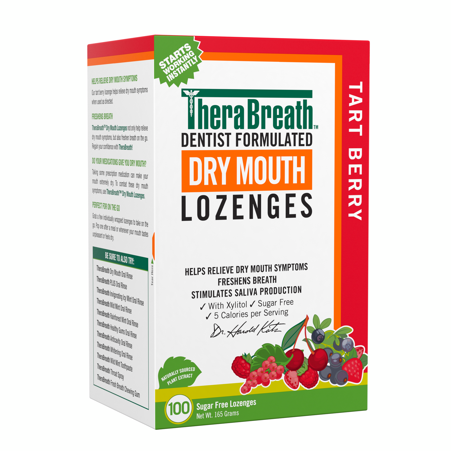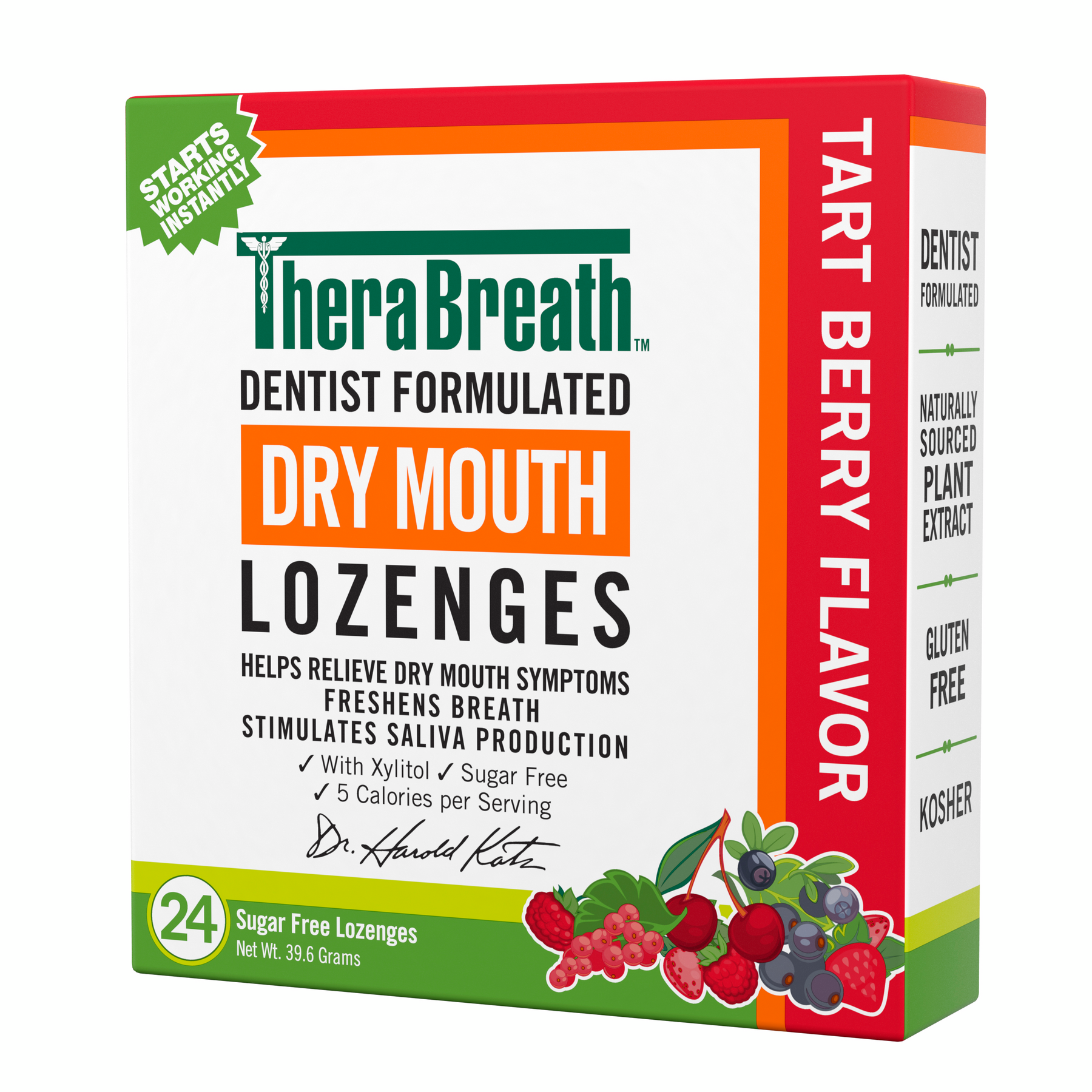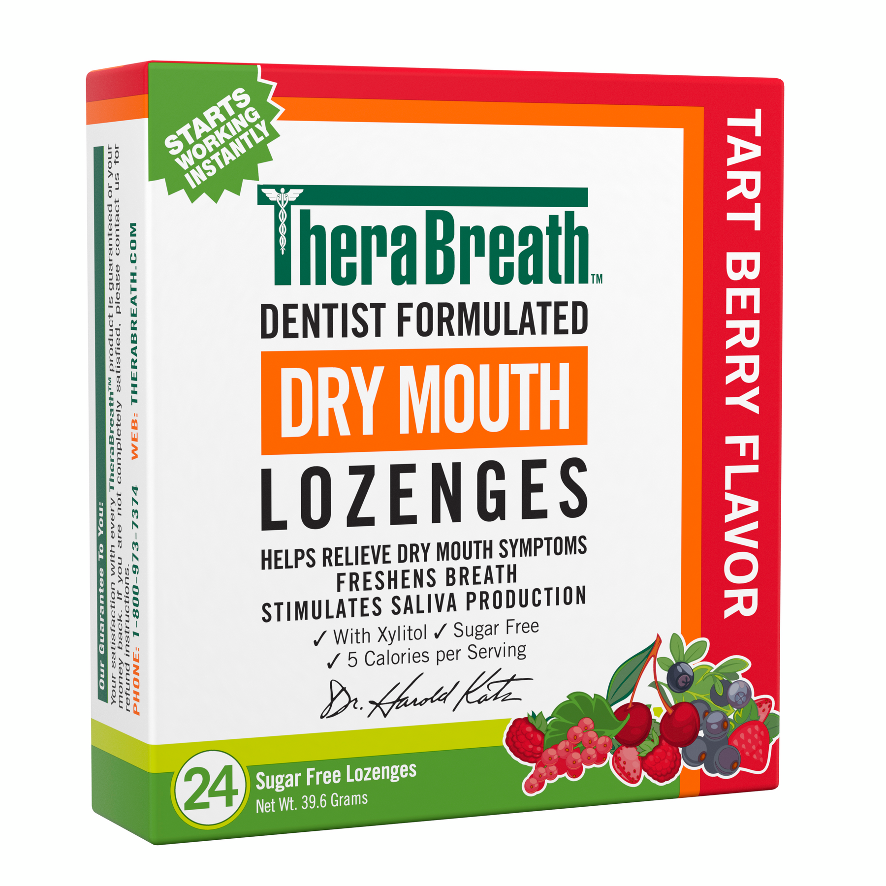 Dry mouth is much more than an uncomfortable feeling. Saliva is the body’s natural defense against the bacteria that cause bad breath. Fortunately. when your mouth is feeling dry when you’re on-the-go. there’s an on-the-go solution. TheraBreath Dry Mouth Lozenges.TheraBreath Dry Mouth Lozenges relieve dry mouth symptoms and freshen breath. The pleasant citrus mint formula eliminates unpleasant tastes or odors in your mouth. The tingling Tart Berry flavor enhances saliva flow to help relieve dry mouth symptoms.TheraBreath Dry Mouth Lozenges are individually wrapped for your convenience. Throw a few in your pockets or purse to have fresh breath confidence throughout the entire day. Available in a small. 24 count box you can bring with you as you travel.We’re so confident in TheraBreath Dry Mouth Lozenges that we back it up with our 100% guarantee. If you haven’t seen improvement in your dry mouth symptoms. contact us within 30 days of purchase for a full refund.